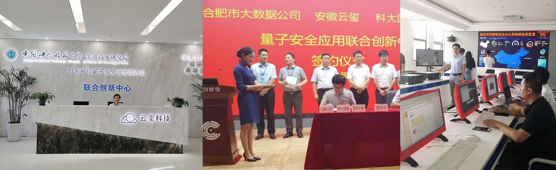 自主可控量子安全云智能辦公聯合創(chuàng)新中心由云璽量子科技、市大數據公司、科大國盾和龍芯中科聯合成立,共同開展大數據+量子安全應用相關方向研究及量子安全應用產品試點推廣。截至目前,該中心已經合作研發(fā)覆蓋云、管、端的產品。