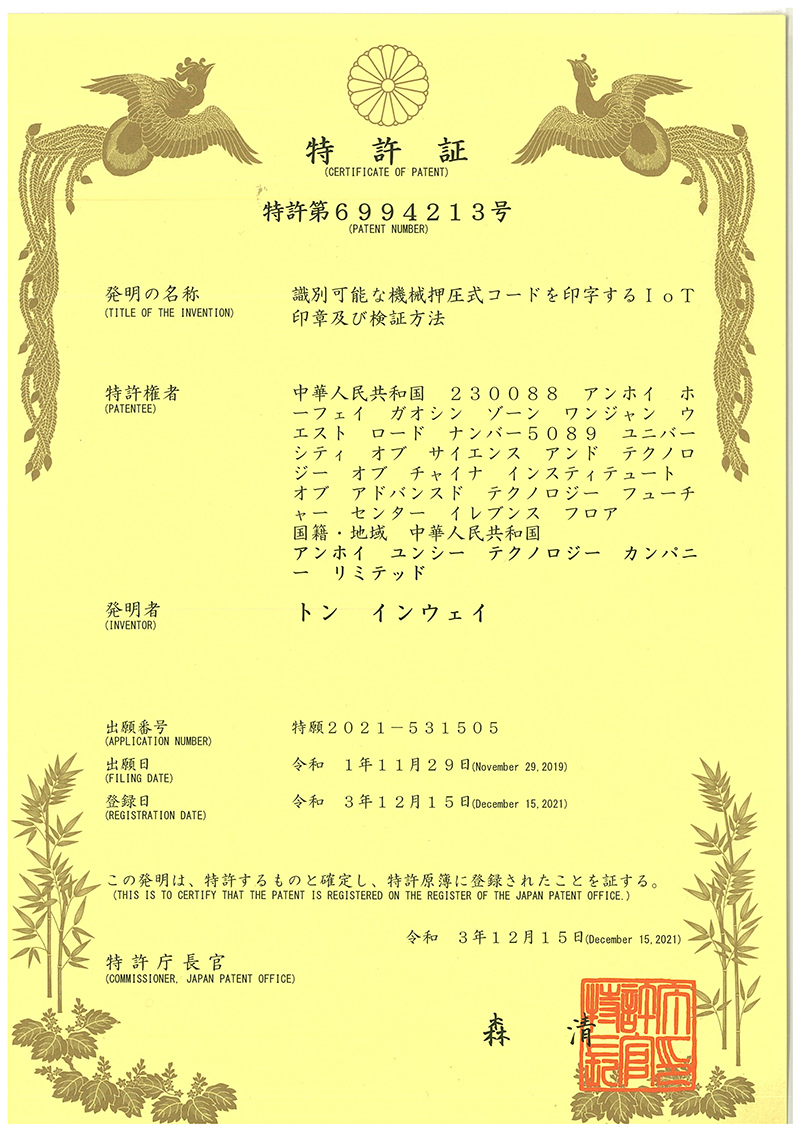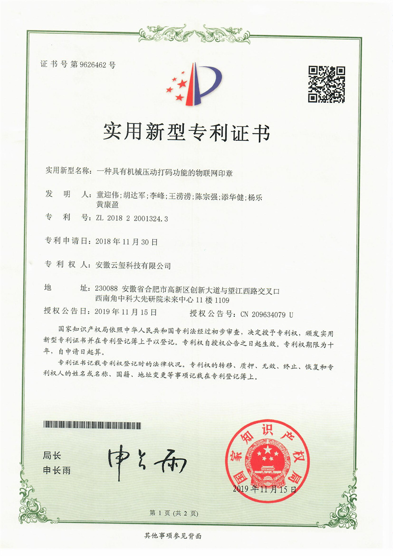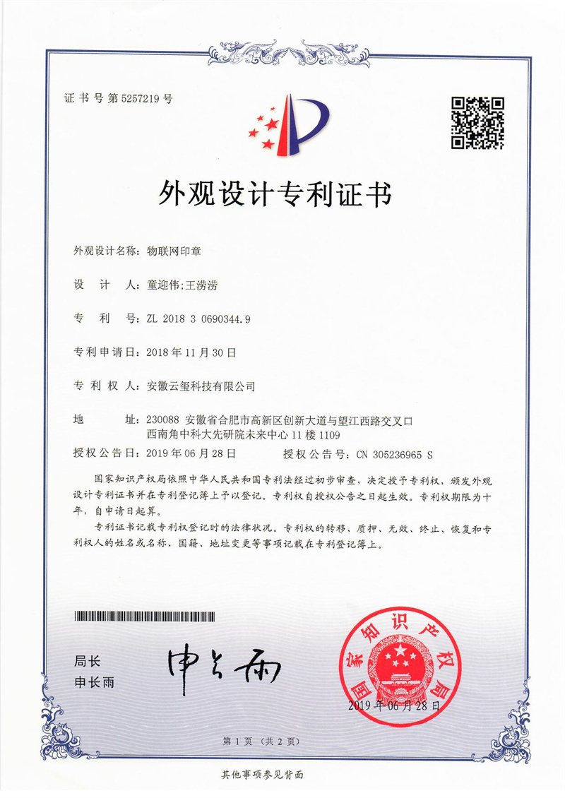 公司原創(chuàng)發(fā)明一體式智能印章技術,引領國內外新一代智能印簽創(chuàng)新變革。獲中日韓多項發(fā)明專利,徹底解決了實體印章和電子印簽管控的社會難題,獲國務院國資委全國央企熠星二等獎。公司聯合國家信息安全產品認證中心、公安部三所、信通院、中國印章協會等,主導起草了行業(yè)首個智能印章安全認證標準和智能印章產品標準,引領了智能印章行業(yè)發(fā)展。