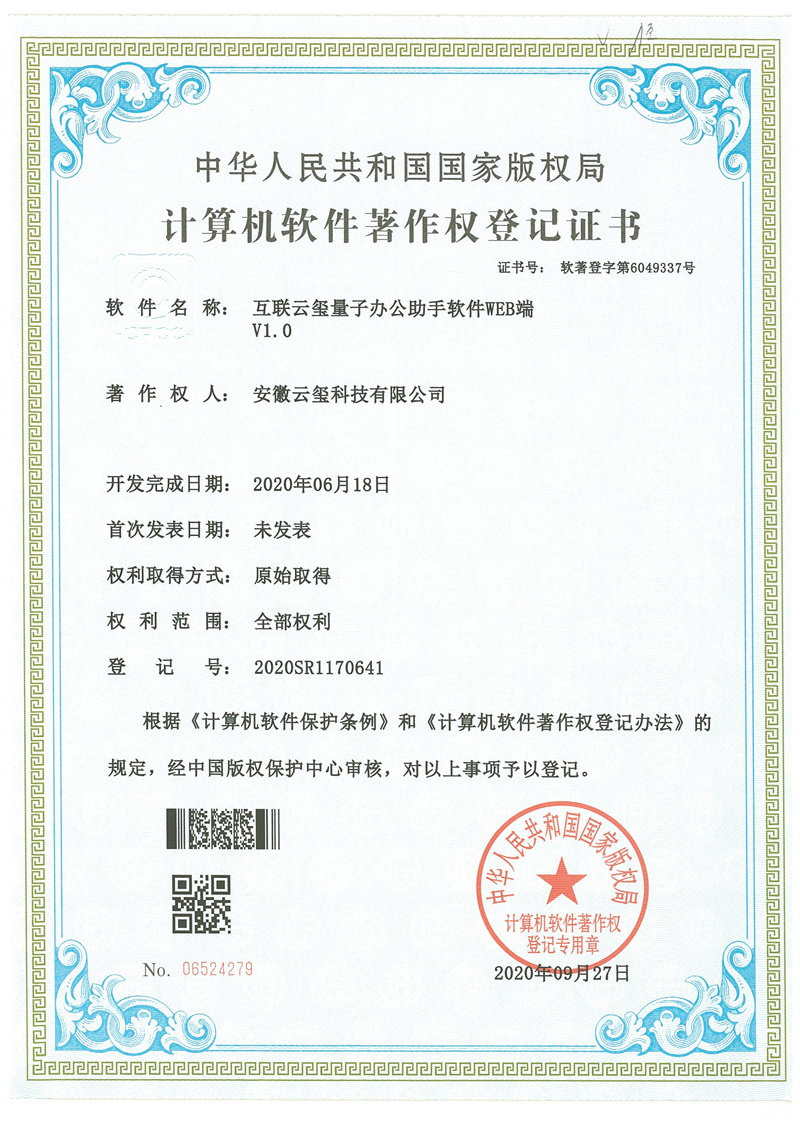 云璽量子是合肥市量子信息產業(yè)重點企業(yè),國家信創(chuàng)工委會成員企業(yè),中國信創(chuàng)500強企業(yè)。主營業(yè)務包括量子安全智能印簽、量子安全智能辦公、量子安全云服務,為政企客戶提供量子安全整體解決方案。